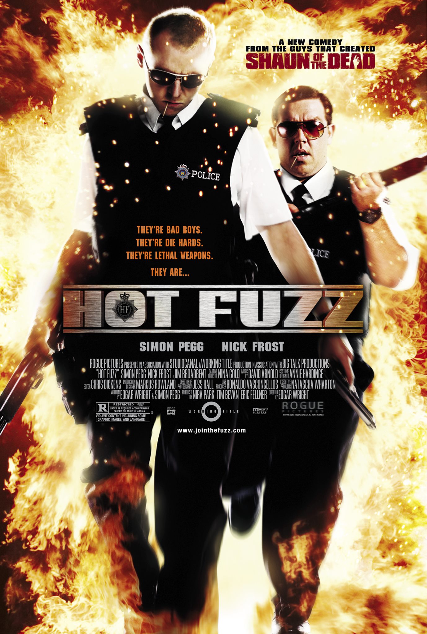 At first, it was the DVD cover that fascinated me. To my eight year old brain, it was inconceivable that so many explosions could fit around the two policemen on the front. This film promised action, excitement and high-octane thrills. It was the forbidden treasure on the family DVD shelf, though I had no clue what the film was even about. I had no idea who Simon Pegg and Nick Frost were, and I had no grasp on who Edgar Wright was or what his acclaimed style of filmmaking was like. To an eight year old, it just looked so… awesome. Hot Fuzz had lodged itself into my brain and I was desperate to watch it.